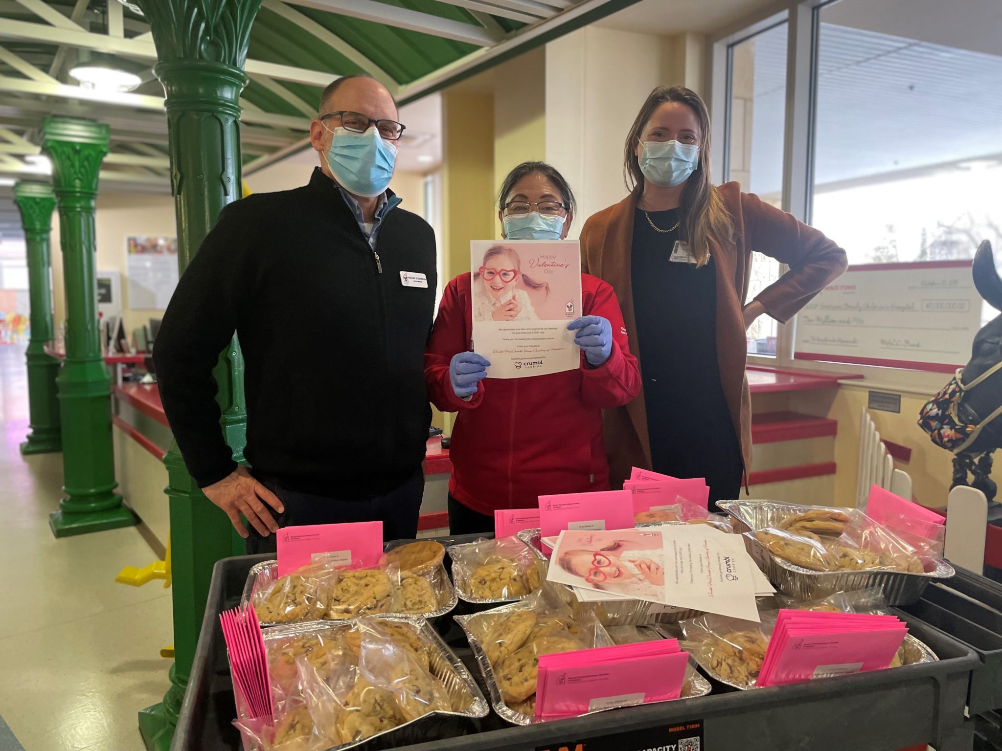 The Ronald McDonald House Charities of Madison (RMHC-Madison) staff and volunteers delivered more than 200 cookies and cards to healthcare workers and staff at partner hospitals including the American Family Children’s Hospital, UnityPoint Health – Meriter, and SSM Health St. Mary’s Hospital – Madison for Valentine’s Day. Thank you to Crumbl Cookies in Madison and Sun Prairie for donating these treats and helping us send love to our tireless providers.